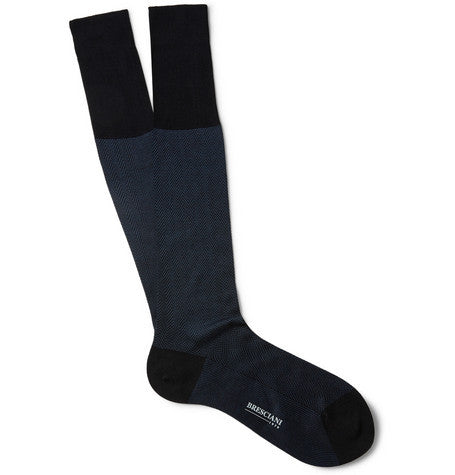 Herringbone Knee-Length Fine Cotton Bresciani Socks